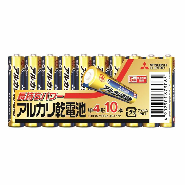 三菱 アルカリ単4乾電池 10本パック!三菱製のアルカリ乾電池が驚きの安さ!総合性能とコストパフォーマンスに優れたアルカリ乾電池です。また、長期保存でも性能劣化のすくない信頼の使用推奨期限4年!また、水銀不使用!タイプ アルカリ乾電池型 単4形本数 10本三菱電機 MITUBISHI 三菱 アルカリ乾電池 単4形 10本パック LR03N/10S 10P