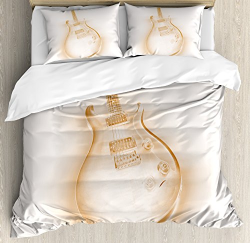 【中古】【未使用・未開封品】ジャズ音楽インテリア布団カバーセットby Ambesonneグラフィックエレキギターにシンプル背景モダンの趣味のロックポップジャズ装飾、装飾寝具セ