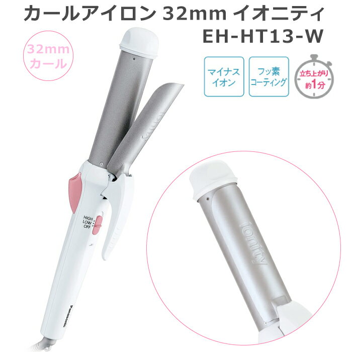 Panasonic パナソニック カールアイロン 32mm イオニティ EH-HT13 ホワイト 白 EH-HT13-W ダブルマイナスイオン ツヤ巻き フッ素コーティング 2段階温度調節 立ち上がり1分 360度回転式コード 巻き髪キープ ツヤ髪 ヘアケア 女性 プレゼント 可愛い 韓国ヘア お洒落 人気