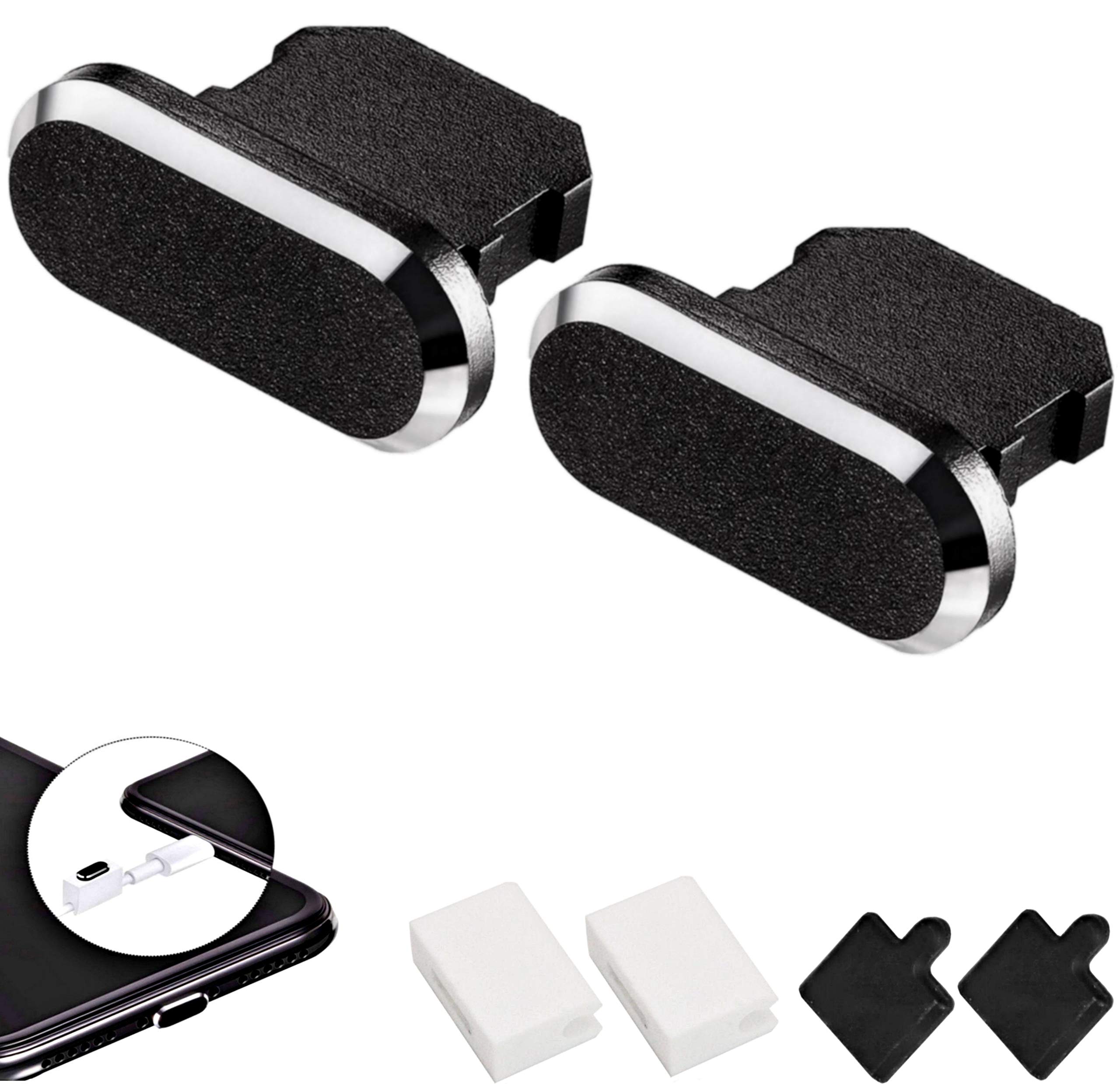 Lightning 差し込み口 保護キャップ Apple iPhone11 11plus X Xs Max Xr 8 7 6S 6 Plus・iPad/iPad mini/iPod などに適応 ライトニング 充電口 蓋 イヤホンジャック カバー コネクタ アルミニウム 防汚 ダスト プラグ - キャップホルダー プラグカバー 付き (2個入り・ブラッ