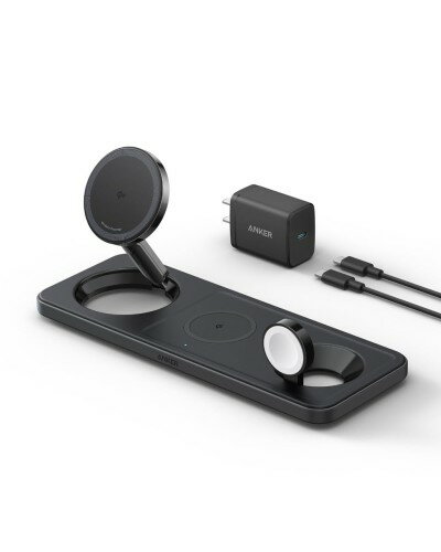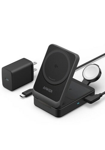 Anker MagGo Wireless Charging Station (3-in-1 Pad) Qi2対応 マグネット式 3-in-1 ワイヤレス充電ステーション/ワイヤレス出力/Apple Watchホルダー付 MagSafe対応 iPhone 16 /15 / 14 / 13 ブラック