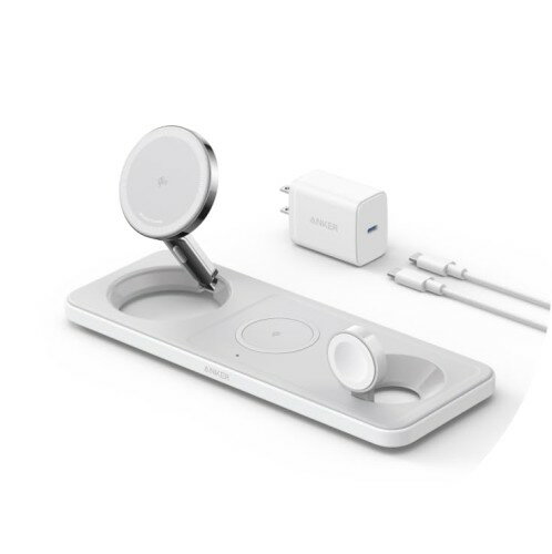 Anker MagGo Wireless Charging Station (3-in-1 Pad) Qi2対応 マグネット式 3-in-1 ワイヤレス充電ステーション/ワイヤレス出力/Apple Watchホルダー付 MagSafe対応 iPhone 16 /15 / 14 / 13 ホワイト