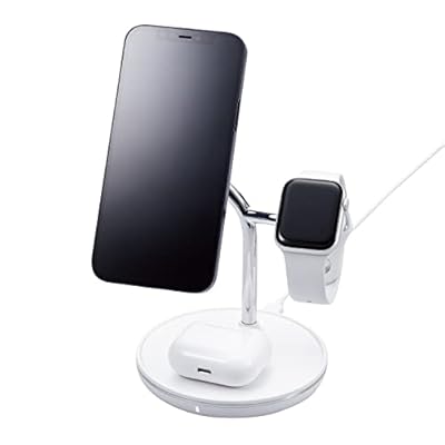 エレコム ワイヤレス充電器 3in1 3台同時充電 [Magsafe対応のiPhone/Apple Watch/AirPods] マグネット内蔵 7.5W+5W Type-C(入力ポート) C-Cケーブル付属 Apple正規品 Made for Apple Watch ホワイト W-MS04WHブランドエレコム(ELECOM)色ホワイトモデルW-MS04WH商品説明【商品概要】MagSafe対応iPhoneシリーズをマグネットで固定し7.5Wで高速充電可能で、同時にワイヤレス充電対応AirPodsシリーズとApple Watchも充電できるワイヤレス充電器です。※本製品の充電出力はマグネット部7.5W、台座部5W、Apple Watch充電部2.5Wです。MagSafe規格15Wの充電には対応しません。MagSafe対応iPhoneシリーズ、ワイヤレス充電対応AirPodsシリーズ、Apple Watchシリーズを3台まとめて同時に充電可能です。マグネットによりコイル位置が合うので、効率よく充電可能です。Lightning端子を使用しないので、イヤホンを使いながら充電でき、またコネクターの水濡れによるショートの事故を抑制します。※本製品は防水構造ではありません。安心のApple正規品です。Made for Apple Watchを取得しています。【商品説明】【商品詳細】ブランド:エレコム(ELECOM)商品種別:携帯電話・スマートフォン用ワイヤレス充電器商品名:エレコム ワイヤレス充電器 3in1 3台同時充電 [Magsafe対応のiPhone/Apple Watch/AirPods] マグネット内蔵 7.5W+5W Type-C(入力ポート) C-Cケーブル付属 Apple正規品 Made for Apple Watch ホワイト W-MS04WH製造元:エレコム(ELECOM)商品番号:W-MS04WH発売日:2022年09月21日色:ホワイト商品タイプ:1)充電器単体【当店からの連絡】