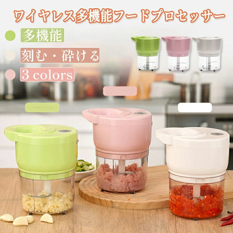 【送料無料】フードプロセッサー コードレス 充電式 肉挽き みじん切り チョッパー 小型 万能 家庭用 調理 マルチマシン 多機能 キッチンミキサー 洗いやすい みじん切り 下ごしらえ 肉みじん にんにく ペースト 大根おろし 電動 ギフト