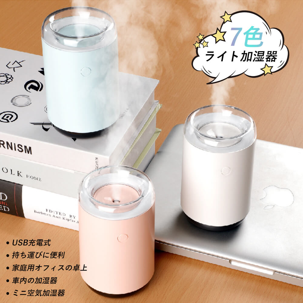お買い物マラソン【P5倍】加湿器 USB充電式 卓上加湿器 USB充電式 加湿器 7色ライト加湿器 持ち運びに便利 家庭用オフィスの卓上 車内の加湿器 ミニ空気加湿器 USB充電式静音噴霧 きれいに加湿 二つの噴霧モード 操作が簡単 イルミネーションを楽しむ