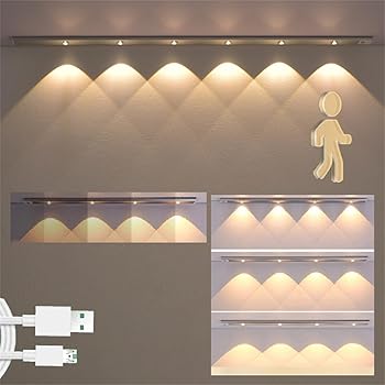 【中古】キャビネットの下ライト人感センサーライト -120cm3色調光機能 Type C充電式 夜間 室内照明 省エネ 超寿命 マグネット内蔵 配線工事不要 本棚/