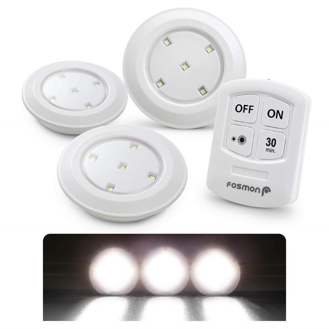 Fosmon (3個セット・昼白色) LEDキャビネットライト タッチ式ナイトライト 電池式 リモコン付 色温度 5700K ワイヤレス小型照明 寝室 玄関 階段 クローゼット 廊下 台所 本棚向け