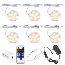 キャビネットライトライト 調整可能LED照明 ラジコントロール12 V 照明装置 超薄ボールランプ 食器棚 本棚ショーケース ワインキャビネット タンスなどに適用6個セット (電球色3000K)