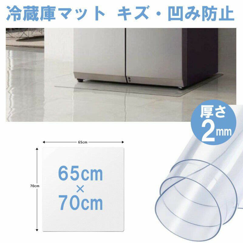 冷蔵庫 マット 透明 キズ 防止 Mサイズ 65×70cm 防水マット クリア 床保護 下敷き 冷蔵マット 家具マット デスクマット キズ防止 滑り止め チェアマット KAN000480