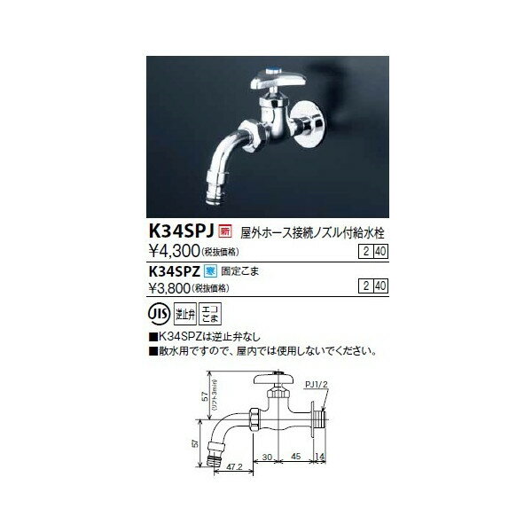 KVK 横水栓 13(吐水口回転・ホース接続・逆止)K34SPJ