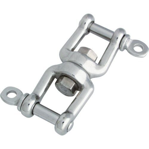 水本機械製作所メーカーお問い合わせ:079-246-2501【特長】●ピンを開閉することで簡単にチェーンなどが取り付けできます。●金具のセンター部がスイベル式で自在に回ります。【用途】●チェーン・ワイヤ・ロープの連結金具として。【仕様】●ねじ径:M6●使用荷重(kN):1.67●A(mm):6.2●B(mm):12●D(mm):6●L1(mm):64●L2(mm):12【材質/仕上】●ステンレス(SUS304)【原産国】台湾