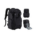 【商品の仕様】2気室カメラバッグ外サイズ:30*22*45cm「最大容量:25L」、内サイズ:28*21*43cm、重さ:1500g、*ご注意:手動測定には誤差があります、ご了承ください。一眼レフカメラ +3~4個レンズ + アクセサリ + 16インチノートパソコン+45-60cm三脚など収納に対応できます。アウトドア、旅行、通勤、通学、防災グッズ、撮影にも適用できます。【2気室分類収納】カメラリュックサックの正面はEVAハードケースで、180°開閉方式を採用しています。 カメラバッグの内部はマジックテープ式仕切り板、取り外し可、設備の大きさによって自由組み合わせ可能です。通勤バッグ、日常用バッグとしても使え、整理するのがより便利です。 (内部構造:上下2室構造、上部には日用品や衣類を収納でき、下部にはカメラや複数のレンズを収納できます。)【耐久性&耐衝撃】優れた1000Dポリエステルツイル素材を採用しており、耐久性、耐衝撃、耐引裂き、傷つきにくく、耐摩耗性、耐汚れ、お手入れが簡単です。バックパックの安定性を高め、中身が衝撃を受けるのを防ぐことができます。【軽減負担】クッション性の高い背面ショルダーハーネスや調整可能のチェストストラップを備えたカメラバッグは、移動中の揺れを防いだり、体へのフィット感を高めたりする効果があります。背中に触れる部分も中空ハニカム材料パッドで作られます。体への負担を軽減するだけでなく、通気性を確保し、長時間の移動も楽に行えることができます。【防雨カバー】カメラバッグに水が入るのを防ぎ、大切なカメラやアクセサリーを水濡れから防ぐことができます。雨が強い場合は、防雨カバーが付属したレインカバーを併用することで、より防水性能が高まります。