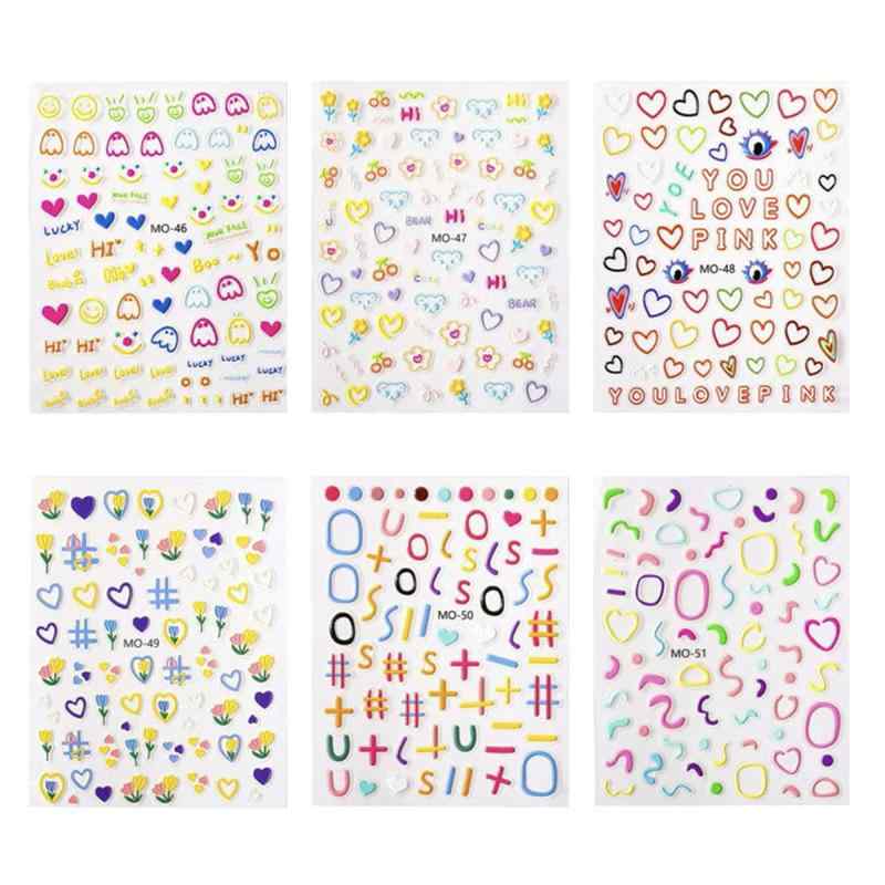 Yingrito シール ぷくぷく ネイルシール 可愛い 6枚セット ライン型立体シール 創造的な3Dデコレーションステッカー 立体 かわいい立体シールセッ 手帳DIY必須アイテム 携帯電話飾り用 DIY用 手