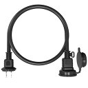 キモチ(Kimoc) 延長コード 1m 短い 屋外 防水 ブラック ソフト 丈夫 耐寒 耐熱 2ピン防水プラグ トラッキング火災予防絶縁キャップ付き 12A 125V 電源増設 連結可 コンセント 1個口