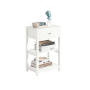 サイドテーブル ベッド横 ナイトテーブル ベッドサイドテーブル おしゃれ ベッドサイド キャビネット 白 幅45×奥30×高68cm 電話台 引き出し付き 北欧風 サイドチェスト ソファーサイド ベッド周り収納 (FBT46-W/ホワイト)