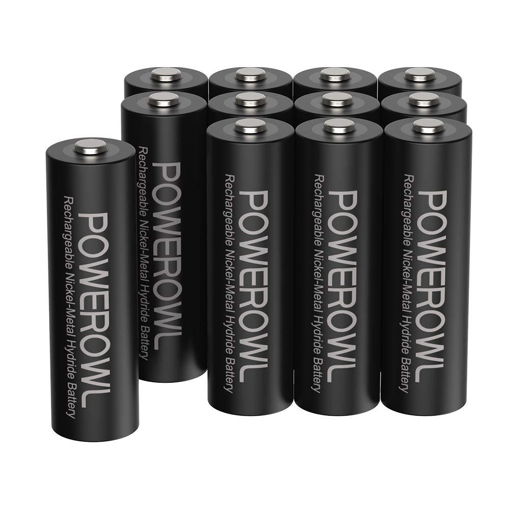 Powerowl単3形充電式ニッケル 水素電池12個パック PSE安全認証 自然放電抑制 環境保護(2800mAh、約1200回循環使用可能