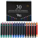 【送料無料】Wordsworth & Black 30パック万年筆用インクリフィル - アソートインクカートリッジ30本セット - 国際標準サイズ - 長さ約2.3インチ - 底径約0.24インチ - 使い捨て・汎用タイプ