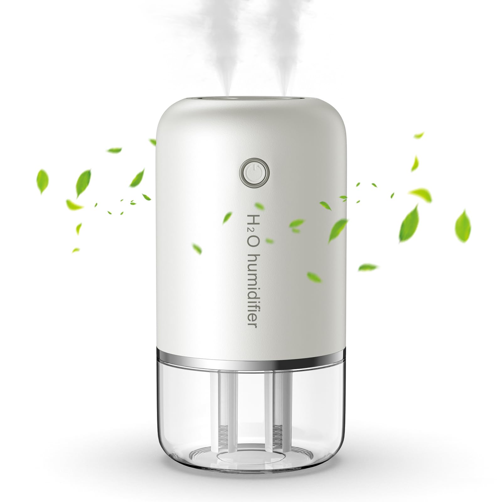 【ダブルノズル・80ml/h加湿可能】本加湿器は新しいダブルノズル設計で、高性能の超音波振動子を搭載し、従来よりミストの勢いが大幅にパワーアップ! 超高速1 sでミストが出て、コンパクトながら最大加湿量80ml/hを実現し、急速に部屋に加湿することができます。持続噴霧モード、間接噴霧モード、交互噴霧モードの3種類の加湿モードを持ち、40 ml/hと80 ml/hの2段階加湿量を選択可能で、日常生活の加湿需要を満たす。【400ml大容量・10時間使用可能】このUSB式加湿器はアップグレード版の400 ml大容量のタンクは、1回の加水で最大10時間使用でき、給水の手間を省ける!夜間に一晩中使用しても心配ありません。【卓上・車用もOK】加湿器の本体サイズは80*80*149mmで、コンパクトでテーブルに置いても邪魔しません。さらに、USB-C給電式なので、多くのドリンクホルダーに簡単に設置できて、車用にもピッタリ!【ナイトライト機能&空焼き防止機能】青いライトモードと虹色モードの2つの光モードがあります。虹色ライトモードは7色のライトに循環し続けます。本卓上加湿器は、モード別に、対応する自動停止時間を設定し、連続モードは5時間後に自動停止、間接モードと交代モードは10時間後に自動停止できます。加湿器を閉じるのを忘れても、自動的に閉じるため、空焼きのリスクを排除し、お年寄りやお子様にも非常に安全です 。【水溶性アロマオイル対応】本加湿器はお好みの水溶性アロマオイルが使用可能です。 空気を潤すミストにアロマの香りをプラスと、お部屋が癒され空間に変わります。 【上部給水型】 蓋を開けて上から簡単に給水できます。【水漏れ防止】 水漏れ防止仕様なので、加湿器が倒れても水はこぼれません。【次亜塩素酸水対応】 50ppm以下の次亜塩素酸水を使用することができます。【注意】初めて使用する場合は、十分に綿棒を湿らせてください。【ご注意】製品にはバッテリが含まれておらず、使用時には電源を入れてから実行する必要があります。