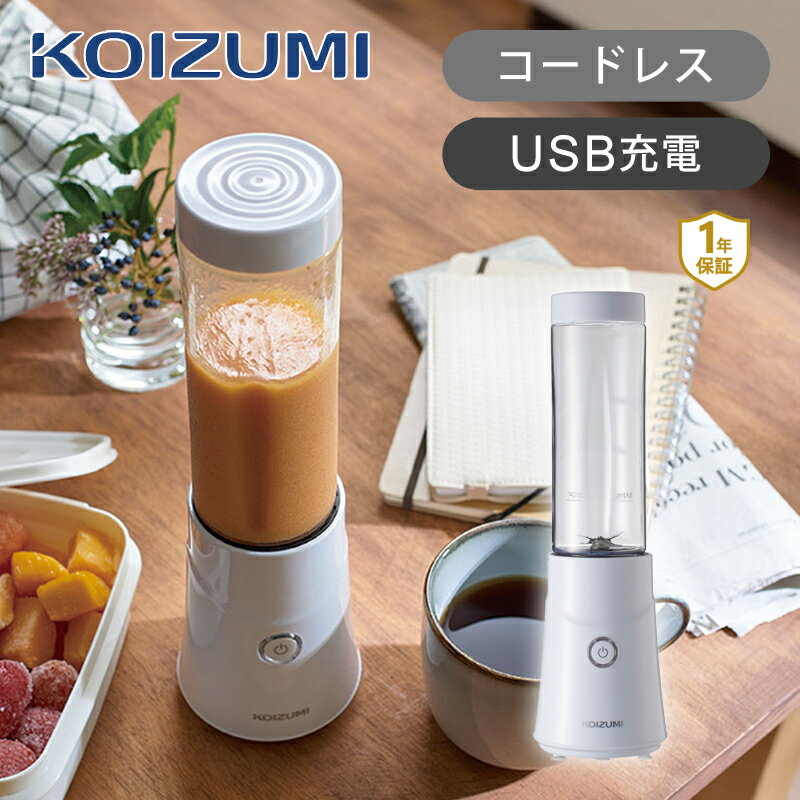 コイズミ コードレスミキサー KMX0300W | 送料無料 ココニアル かわいい 小型 ボトルジューサー ジュース 無地 白 シンプル 混ぜる USB 充電式 コードレス ボトル キャップ付 280ml KOIZUMI 小泉成器 ワイヤレス ジム 運動