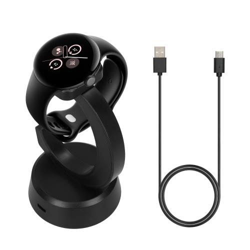 kwmobile 充電ケーブル Google Pixel Watch 3 / Pixel Watch 2 / Fitbit Versa 4 3 2 / Ace LTE対応 充電器 - スマートウォッチ 充電スタンド スペア 黒色