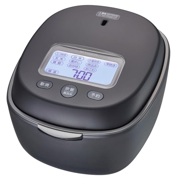 タイガー魔法 (TIGER) 炊飯器 5.5合 土鍋圧力IH式 土鍋 ご泡火炊き 少量炊き おこげ ブラック JPL-Y100 KG【土鍋ご泡火炊き】土鍋の高火力と遠赤、やさしい泡立ちでお米の旨みを守る「土鍋ご泡火炊き JPL-Y型」では、最高温度約250度の理想の火力を実現。【多段階圧力機構】 「多段階圧力機構」が段階的に圧力をコントロールすることで、仕上げ段階の蒸らし温度を高く維持させながら、やさしく温度変化させ、お米の甘みを引き出します。【食感3段階炊きわけ/おこげ選択】料理や目的に合わせて炊き方を(1)しゃっきり(2)標準(3)もっちりの3段階に調節できます。さらに「おこげ選択」では、香ばしい土鍋ならではのおこげが楽しめます。【少量旨火炊き】少量でも旨みを引き出す加熱を実現。0.5合から2合までの少量のごはんでもおいしく炊きあげます。【簡単お手入れ】普段のお手入れは内ぶた・内なべのたったの2点だけ。内ぶたはマグネット着脱で簡単に取り外せるだけでなく、食器洗い乾燥機対応で、毎日のお手入れをラクにします。【デザインと操作性】タッチパネル搭載の液晶と使い心地の良さにこだわったボタンで”用の美”を追求したデザイン。【保証期間】保証期間:1年、内なべは安心のつき【仕様】加熱方式:土鍋圧力IH+多段階圧力機構 / 炊飯容量:5.5合炊き(最大炊飯容量:1.0L) / サイズ:29.0×35.1×22.0cm(幅×奥行×高さ) / 本体重量(kg):6.9 / 電源:AC100V / 最大消費電力:1080W【付属品】計量カップ、自立式しゃもじ