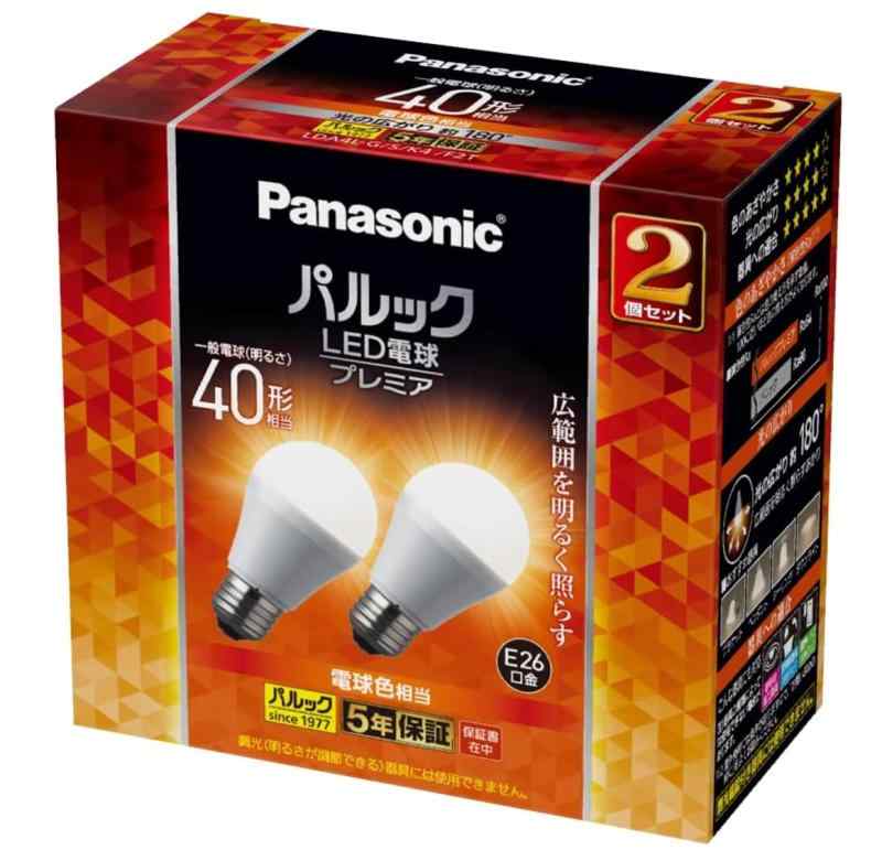 パナソニック LED電球 プレミア E26口金 電球40形相当 2個入 電球色相当(4.4W) 一般電球広配光タイプ 密閉器具対応 LDA4LGSK4F2T