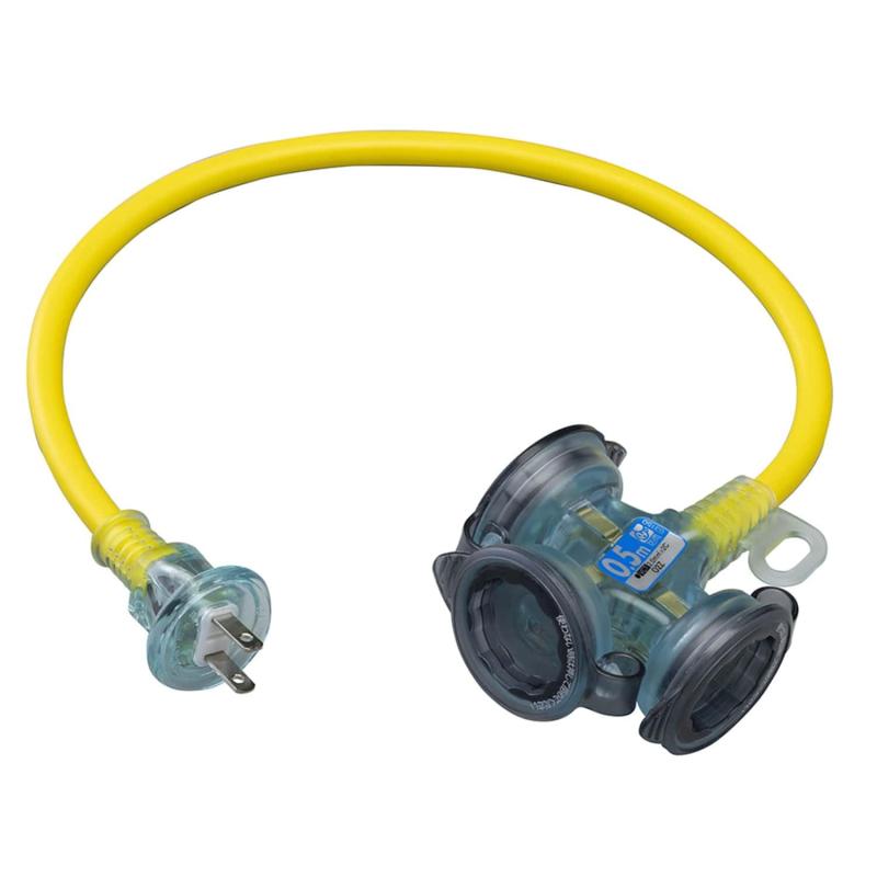 ハタヤ (HATAYA) 2P 延長コード 屋外用 100V型 コード0.5m 太さ2.0㎟ コンセント3個 コンセント防雨キャップ パイロットランプ内蔵 家庭用 工場用 軽作業 ショートタップ (0.5m) FX-005-RY レモンイエロ
