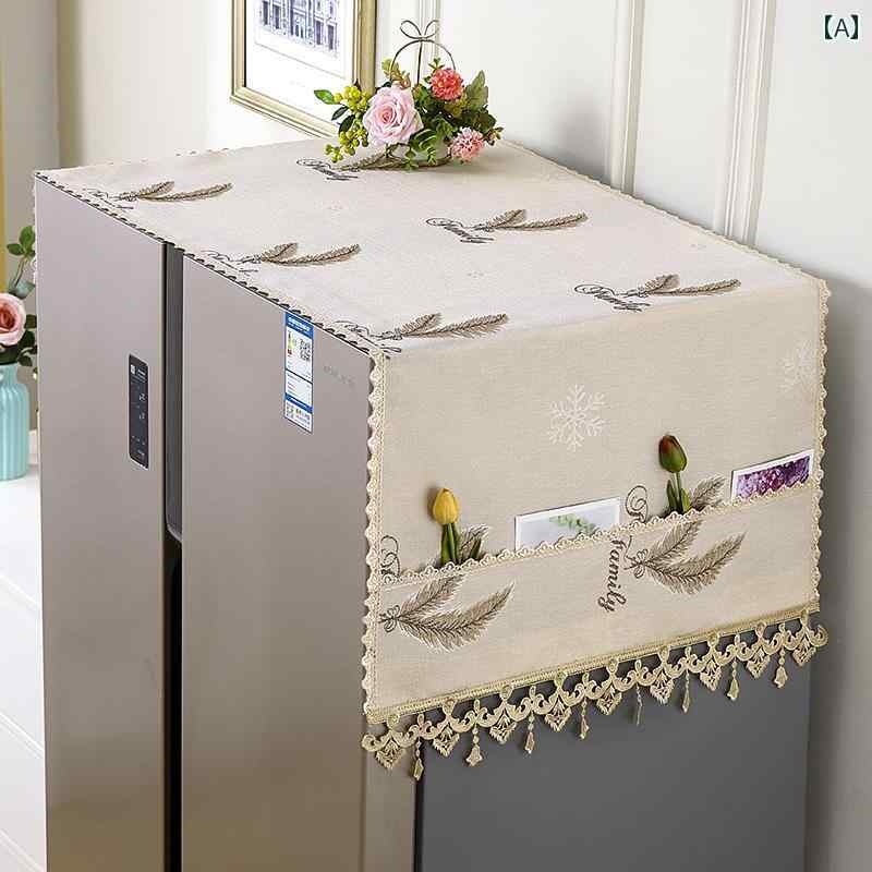 ・主要素材: 布・スタイル: シンプルモダン・カラー展開: フェザー-カフェ、アサガオ-カフェ、花と鹿-カフェ、花と鹿-ブルー、国色天香-ブルー、フェザー-ブルー、牡丹-ブルー、牡丹-カフェ、国色天香-カフェ、アサガオ-ピンク、アサガオ-ブルー、発財樹-グレー、発財樹-カフェ、発財樹-ブルー、イチョウ葉-カフェ、イチョウ葉-ブルー、一枝独秀-カフェ、一枝独秀-ブルー、鎏金歳月-カフェ、鎏金歳月-ブルー、鎏金歳月-グレー・サイズ: 53×140cm(片開き冷蔵庫カバー)、35×100cm(電子レンジカバー)、65×170cm(両開き冷蔵庫カバー)