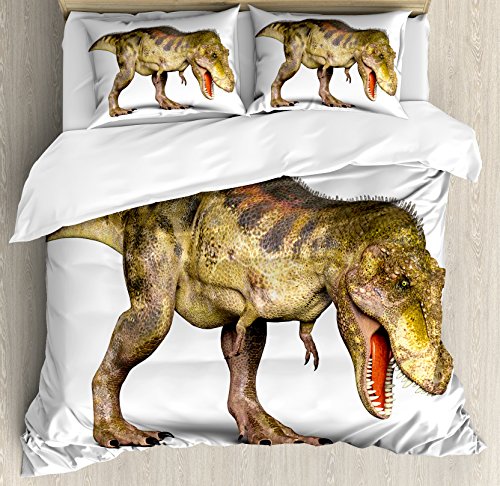 【中古】【未使用・未開封品】恐竜羽毛布団カバーセットby Ambesonne、リアルな3dスタイル先史時代の動物絶滅種Ancient Old、装飾寝具セットwithピロー、タンライトイエローAr