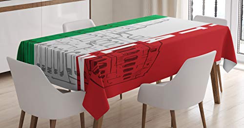 【中古】【未使用・未開封品】イタリア国旗テーブルクロスby lunarable、Roma LandmarkコロシアムHeritage都市景観Ancient Civilizationイメージ、ダイニングルームキッチン長