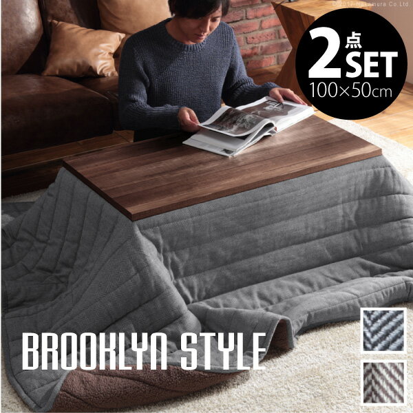 【5%OFFクーポン対象】こたつ テーブル おしゃれ 古材風アイアンこたつテーブル 〔ブルック〕 100x50cm+ ヘリンボーン柄こたつ布団セット セット こたつ布団 コタツ 炬燵 長方形 古材 フラットヒーター ヴィンテージ レトロ ブルックリン