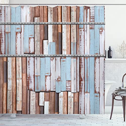 【中古】【未使用・未開封品】(180cm W By 210cm L, Multi 7) - Rustic Decor Shower Curtain by Ambesonne, Long Wooden Planks Tree Designs on with Rusty Metal Screws Ar