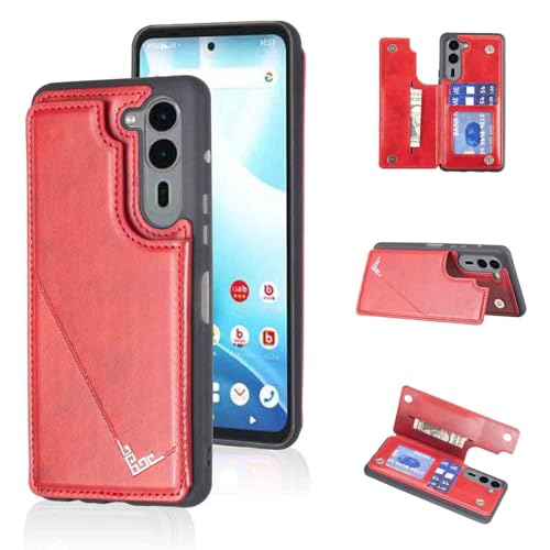 Anrek新型 FUJITSU Arrows We2 Plus F-51E docomo 用 背面 カードケース 手帳型 ランヤード付 背面カバー (レッド) ドコモf51e アローズwe2プラス スマホケース サイドマグネット カード収納 横置き機能 PUレザー 財布型 携帯カバー 富士通f51e RED