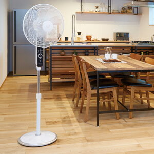 アピックス ACフロアー扇風機 AFL-254R APIX リモコン付き ACリビング扇風機 AFL-254R 高さ最大約144cmの大型フロア—扇風機です。高い位置から、直径約40cmの大きな羽根で、広いお部屋の空気を効果的に循環させます!マグネット貼付式の薄型リモコンは、ポールに付けておくことができるので便利です。ホワイトを基調とした落ち着いたカラーで、高さがある扇風機でもお部屋に圧迫感を与えません。大きな羽根で風量大、リビングなどの広いスペースで活躍します!風量3段階切り替え。オンオフタイマー付きで安心です。 高い位置から効率的に風を循環できる5枚羽根扇風機です! アピックス ACフロアー扇風機 AFL-254R の詳細 商品名 アピックス ACフロアー扇風機 AFL-254R サイズ(約) 幅45×奥行40×高さ119〜144cm 電源コード長さ:1.8m 重量(約) 8.2kg 電源 AC100V 50/60Hz 消費電力 48/54W 材質 本体:ABS樹脂、ポリプロピレン ガード・ポール:スチール 羽根:AS樹脂 重り(スタンドべース底):ポリエチレン、セメント 付属品 薄型リモコン(マグネット貼付式) 仕様 風量:3段階 上下手動首振り 左右自動首振り:約75度 オン・オフタイマー:1/2/4/8時間 モード風(リズム/おやすみ) 羽根 直径:約40cm、5枚羽根 メーカー アピックスインターナショナル 区分 扇風機 保証 1年 生産国 中国