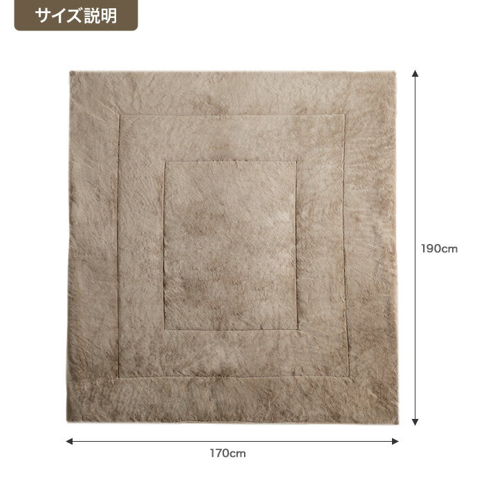 【正方形:190cm×190cm】 Chubby リバーシブルファーこたつ布団 イーナ 166001 こたつ布団のみ ファー モダン ナチュラル 大人ニュアンスカラーの心地よい肌触り『Chubby(チャビー)』リバーシブルファーこたつ布団 【完成品】【梱包サイズ】51cm×42cm×22cm【梱包重量】約4kg【商品重量】約3kg【ご使用にあたって】・水温30℃を限度に、洗濯機で弱い洗濯ができます。・洗濯後は、日陰のつり干しで干すようにしてください。商品詳細サイズ・容量 190cm×190cm規格 【側生地】ポリエステル、中わた【表地】フェイクラビットファー【裏地】フランネル注意事項 ▼誠に恐れ入りますが北海道・沖縄・離島エリアへの配送は行っておりません。ご注文を頂きましても、お受けできかねますので予めご了承のほどお願い申し上げます。▼商品の仕様やデザインは、品質に問題がない程度に予告なく変更させていただく場合がございます。商品の仕様やデザインは随時改善をしており、入荷のタイミングによってはデザインが変更されている場合がございます。部品、生産国、脚部の形状、縫製、カバー類の色や形、サイズなどに少々誤差が発生する場合がございます。予めご了承を宜しくお願い致します。 5