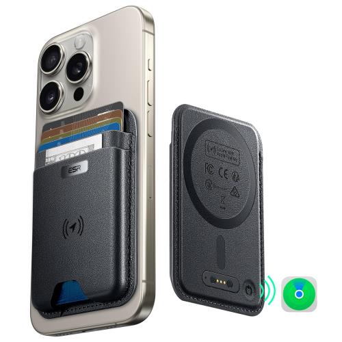 [ESR] MagSafeカードケース「探す」Find My 機能付き 5枚カードホルダー iPhone用強力マグネットウォレット ウォレットトラッカー iPhone 16/15/14/13/12シリーズ用 13/12 mini非対応 ブラック