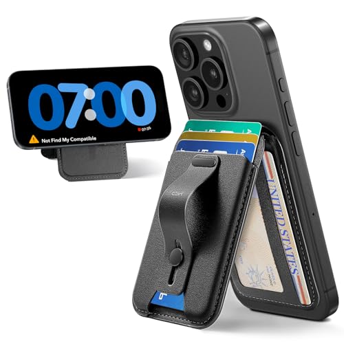 [ESR] [新登場 収納量アップ] MagSafe カードケース 5枚カード収納可能 ホルダー ス マホスタンド MagSafe対応ウォレット 調節可能なスタンド 財布 iPhone 16/15/14/13/12専用磁気ウォレット iPhone 13/12 mini非対応 ヴィーガンレザー Find My「探す」非対応 ブラック