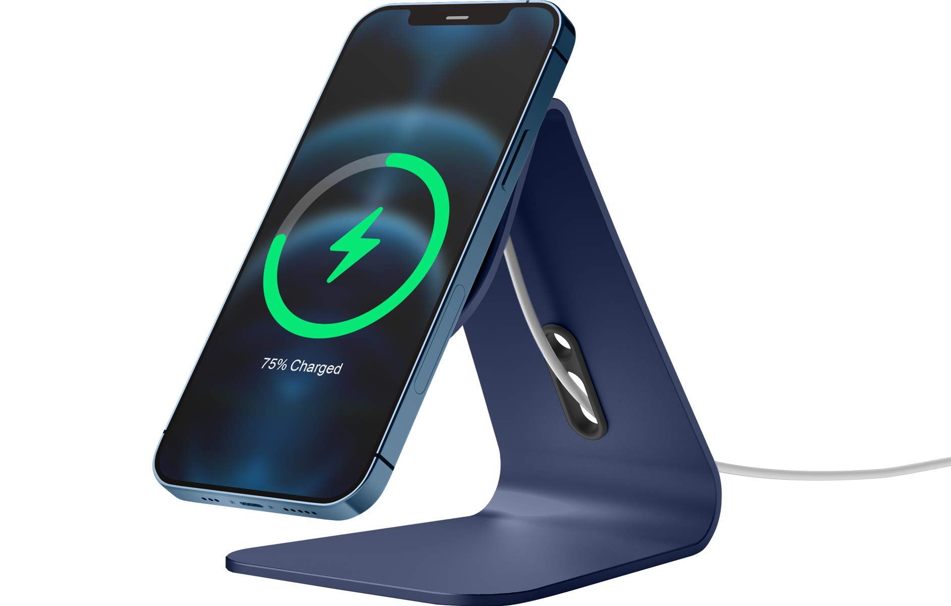 製品仕様… ◆ 対応機種 : MagSafe 対応 iPhone 15 14 13 12 他 ( マグセーフ対応 アイフォン ) 各種 ◆ 内容物 : 充電スタンド × 1個 ◆ サイズ : 約 11.7cm × 9.7cm × 11cm ◆ 重量 : 約 173g ◆ 素材 : アルミニウム 製品特徴… ◆ MagSafe 充電器: Apple純正品のみ対応 ◆ ケースとの併用可否 : elago MagSafe対応 マグネット内蔵ケースのみ可能 ◆ 内側ケーブル収納 : なし ◆ 角度調整 : 不可 ◆ 折りたたみ : 不可 ◆ 片手での取り外し方法 : デバイスを横にスライドするように動かす ◆ 注意事項 : スタンドから端末が落ちてしまう場合がありますので、MagSafe対応マグネット内蔵ケース又はケース無しでご使用ください。 MagSafe充電器専用スタンド… Apple純正MagSafe充電器に対応したシリコンスタンドです。 充電しながら使用可能… ビデオ通話や動画視聴など、画面が見やすい角度に設計されています。 安定感抜群… 滑りにくいよう、スタンド底面には滑り止めパッドを設けております。