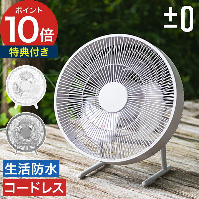 プラスマイナスゼロ サーキュレーター 【特典付き】扇風機 防水 静音 コードレス 卓上 DCモーター 省エネ リビング テラス 部屋干し アウトドア 屋外 キャンプ プラマイゼロ 衣類乾燥 おしゃれ防水 ベランダ 庭 換気 [ ±0 プラスマイナスゼロ テラスファン XQS-K030 ]