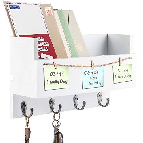 【中古】【未使用・未開封品】Kakivan Wood Wall Mounted 4 Key Holder Hooks with Memo Clips, White Floating Shelves Storage for Coat Rack, Entryway Organizer for Lett