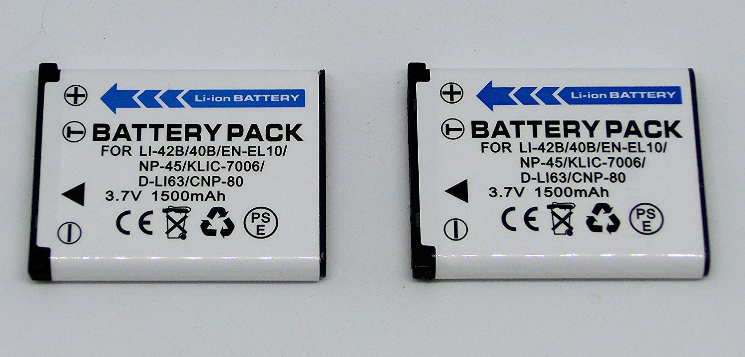 2個set ニコン NIKON li-42B 40B NP-45 KLIC-7006 EN-EL10 互換バッテリー PSEマーク付 1500mAh ペンタックス D-LI108 D-LI63