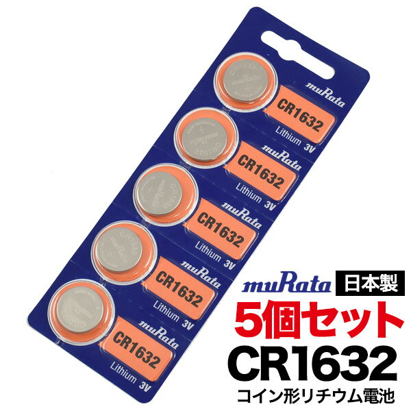 リチウム電池 CR1632 1シート 5個セット 日本製 村田製作所 ムラタ murata 電池 豆電池 マメ電池 ボタン電池 コイン電池 コイン型電池 時計 ゲーム キーレスエントリー 車のキー 鍵 カギ かぎ key 電卓 【B】