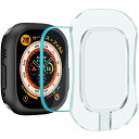 amBand ガラスフィルム ケース付き コンパチブル 49mm Apple Watch Ultra2/Ultra 保護フィルム PC製カバー付き 9H 強化ガラス フィルム 液晶画面保護 貼り付けガイド付き 簡単装着 2セット入り ブラック