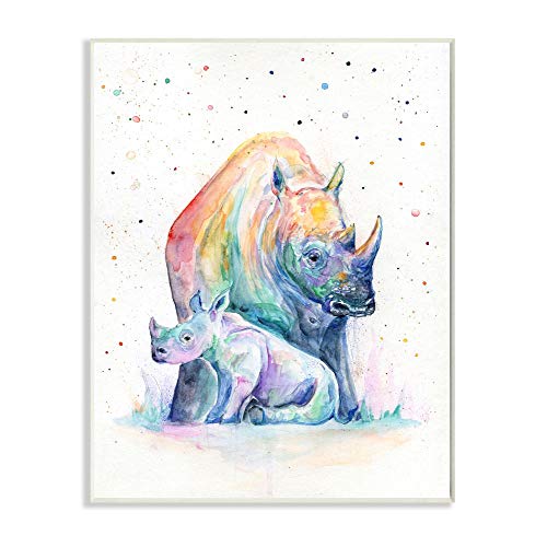 【中古】【未使用・未開封品】Stupell Industries カラフルな抽象的なサイファミリー 動物 水彩画、アーティストMarc Allante Artによるデザイン、10 x 0.5 x 15、壁飾り板