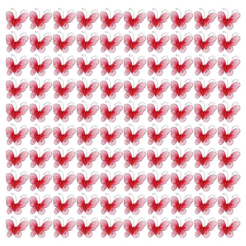 PATIKIL クラフト用100個 蝶々 1"メッシュワイヤーグリッター 蝶々 DIYクラフトホームデコレーション衣類ウェディングデコレーション レッド
