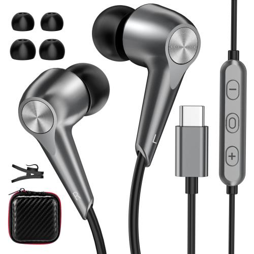 2024新モデル登場 タイプcイヤホン 有線 マイク付き 金属外殻設計 対応iphone 15 pro max/plus/Google Pixel Tablet 8 7a 6a/GalaxyTab S9 Ultra s23+ A54 対応Oppo Reno7A ipad 10 Air 4 5 USB Type c イヤフォン 通話可能 リモコン操作 カナル型いやほん ギフト グレー