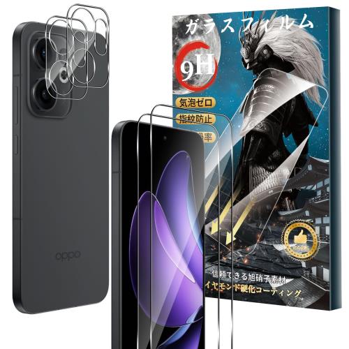 2+2枚セットFor OPPO Reno13 A ガラスフィルム(2枚)+カメラフィルム(2枚) OPPO Reno 13A 対応 フィルム 硬度9H 強化ガラス 旭硝子製 疎水疎油 指紋·汚れ防止 Greerass 高感度タッチ 超高透過率 全面保護 耐衝撃 飛散防止 自動吸着 気泡ゼロ 貼り付け簡単