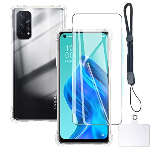対応 OPPO Reno5 A ケース クリア ケース OPPO Reno 5 A カバー TPU 保護ケース カバー背面 + OPPO Reno 5A ガラスフィルム OPPO Reno5A フィルム 日本旭硝子製 フィルム OPPOReno5A 強化ガラス 硬度9H 高透過率 飛散防 強化ガラス + ショート ストラップ 携帯ストラップ + T