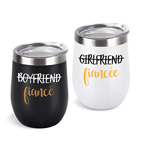 【中古】【未使用・未開封品】Lifecapido Boyfriend and Girlfriend Wine Tumbler Set of 2, Engagement Ideas for Fiance Fiancee Women Friend Bachelorette, 12 Oz Funny C