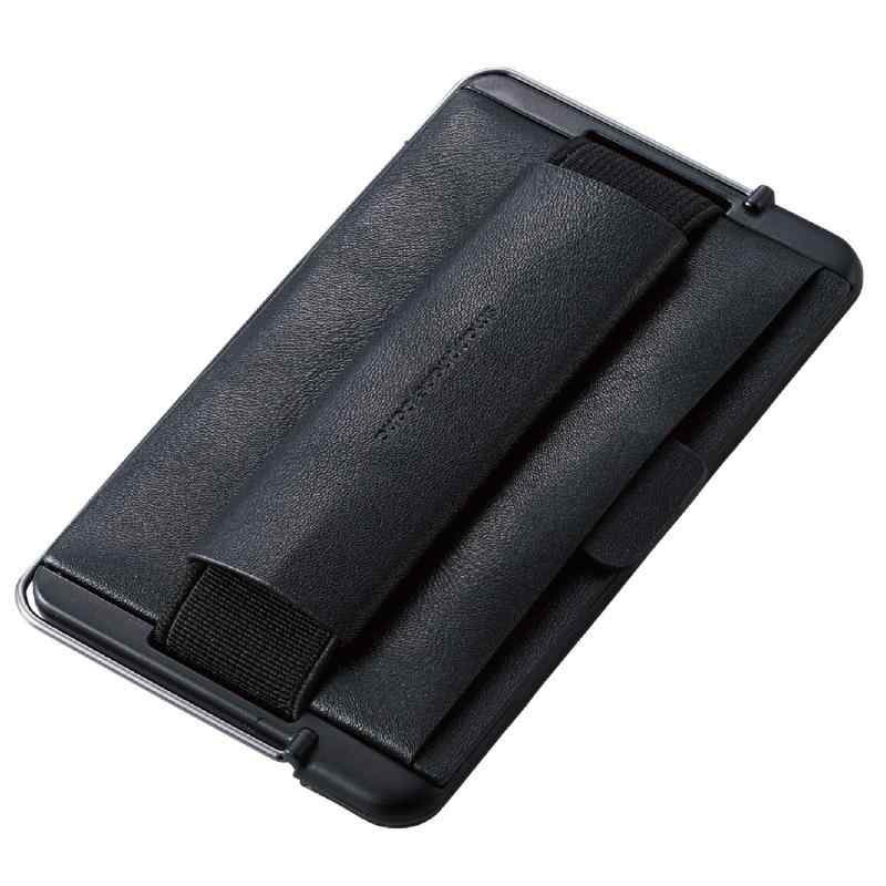 エレコム スマホバンド 落下防止 レザー カード収納 スタンド機能 ブラック P-STBLCBK